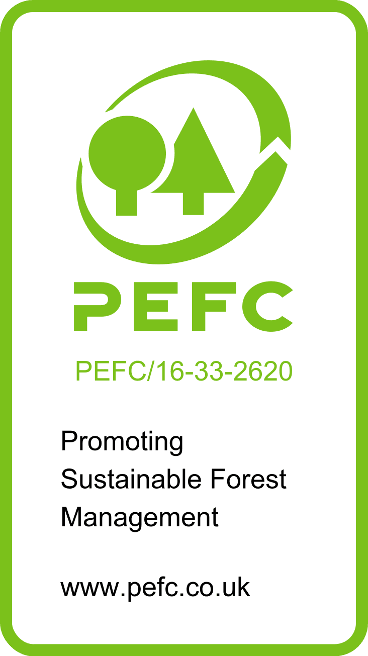 We are PEFC certified, guaranteeing that our materials come from sustainably managed forests and controlled sources. This supports the world’s largest forest certification system.