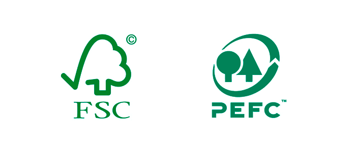 Eco-friendly materials and practices certified by FSC and PEFC standards.